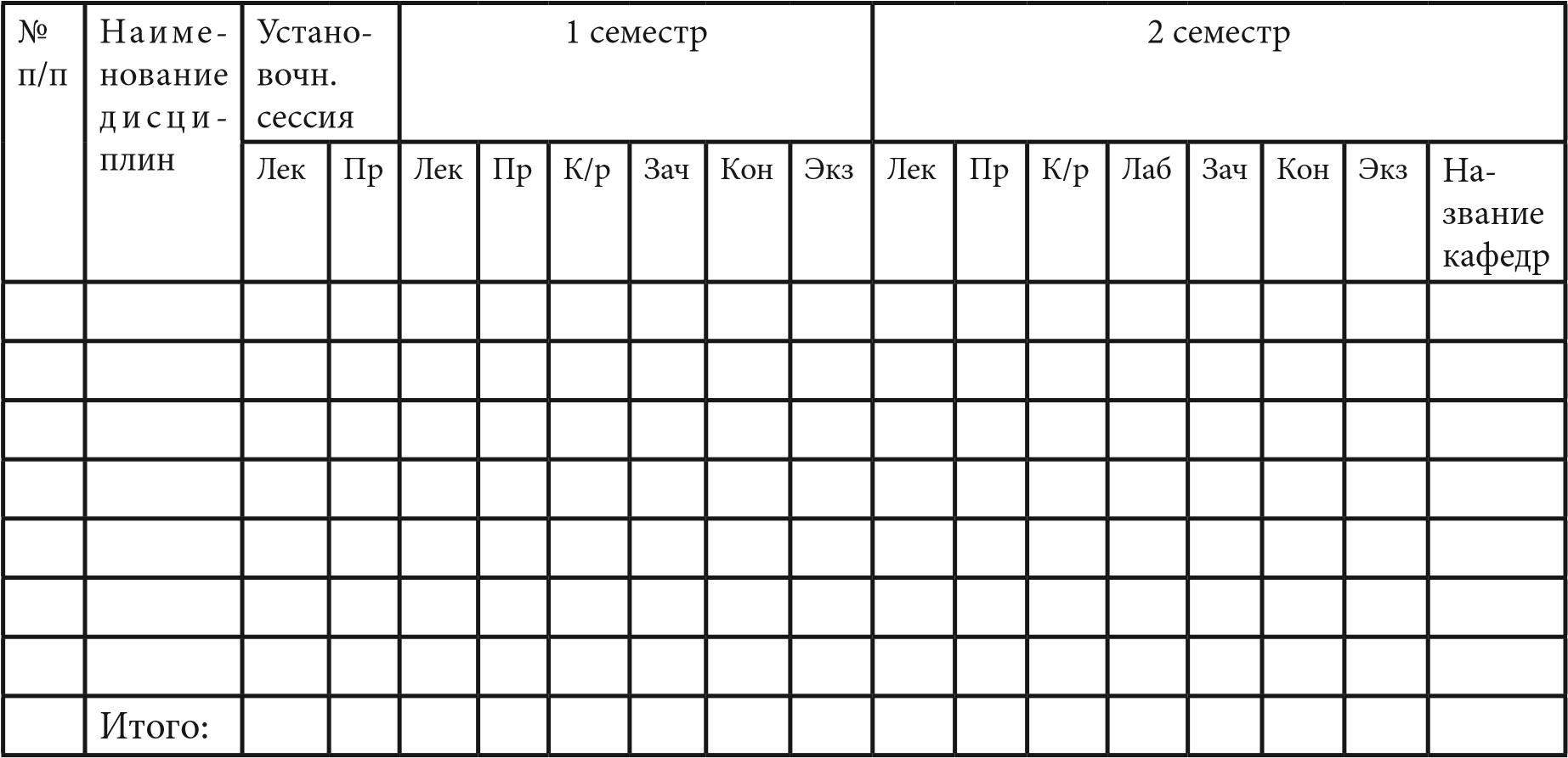 Учебный план введен в 200__году, Утвержден «__»_______20__ года (Протокол №) ___курс