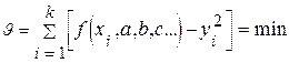 Для обеспечения минимума функции необходимо, чтобы ее частные производные первого порядка по параметрам a, b, c,... были равны нулю (