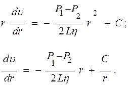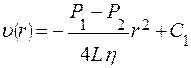 Значение постоянной интегрирования определяется из условия равенства скорости течения нулю на стенках капилляра, т.е. при r =R
