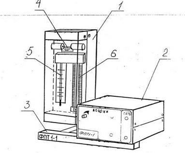 1 - блок РЭ-1 2 - блок приборный БП – 1 3 - стойка РМС 4 - металлический капилляр 5 - реометр 6 - манометр