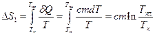 В нашем случае удобно отдельно рассматривать приращение энтропии ΔS, при нагреве системы от Тк до Тпл , и приращение энтропии системы ΔS2 при плавлении: