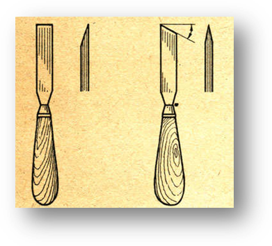 В процессе художественной обработки дерева, кости, рога и китового уса резчики пользуются как специальными, так и общими инструментами. Инструменты резчика по дереву. Основные инструменты резчика по дереву: резаки, стамески, царазики, уголки, клюкарзы, ножи. Каждый режущий инструмент вправлен в рукоятку, которая представляет собой черенок мягко закругленной или слегка ограненной формы. Очень важно, чтобы инструменты, особенно хорошо заточенные режущие, было удобно держать в руках. Это помогает резчику избегать производственных травм. Многие резчики сами делают рукоятки к своим режущим инструментам. Резаки состоят из полотна, шейки, упора и хвоста. Ось хвоста, шейка и полотно должны составлять одну прямую линию. Лезвие у резака скошенное, отчего с одной стороны образуется острый угол, называемый носком, а с другой - тупой, так называемая пятка. Лезвие скошено не только по краю, но и по плоскостям в направлении к режущей кромке. Примерно в 2 - 2,5 мм до режущей кромки полотно резака имеет пологий скос, называемый первой фаской, а у самого лезвия - второй короткий скос, вторую фаску, шириной 1 - 1,5 мм. Фаски имеются с обеих сторон полотна.
