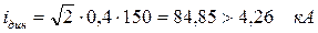 qв – выбранное сечение токоведущей части, мм2 qв = 95 мм2 qmin – минимально допустимое сечение токоведущей части по режиму короткого замыкания, рассчитывается по формуле (4.1.2.1):