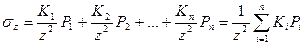 Используя принцип суперпозиции можно определить значение вертикального сжимающего напряжения в точке