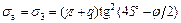 Грунт в пределах призмы обрушения ОАВ (рис. 4.8) находится в состоянии предельного равновесия. Минимальное главное напряжение σ3, равное активному давлению σа, связано с максимальным главным напряжением условием предельного равновесия: