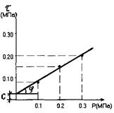 Рисунок 2 - График зависимости сдвигающих напряжений от вертикального давления τ = f(Р).