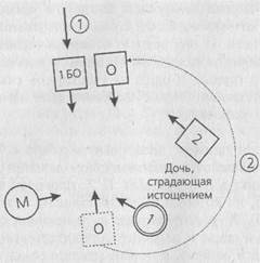 Заместительница клиентки: Так лучше. 1>. А", (ставит позади брата отца родителей отца): Как теперь? Отец: Мне немного тесновато, но в общем хорошо. (Брат отца и родители отходят немного назад.) Отец: Так хорошо. Сильно. Мать: Я чувствую, что муж стал сильнее, я лучше его чувствую. Заместительница клиентки: Я бы тоже хотела, чтобы за мной кто-то был, так мне здесь не очень нравится. Б. X. (ставит клиентку слева от матери, движение 6): Это только на время. Заместительница клиентки: Так лучше, здесь я чувствую больше сил. Б. X.: Да, хорошо набраться рядом с матерью сил, а потом снова вернуться на свое место. (Ставит дочь перед матерью.) Заместительница клиенки: Мне это нравится. Здесь у меня ощущение силы и свободы. Но теперь мне жаль брата. Б. X: Это же было временно, теперь ты можешь снова вернуться к брату. (Клиентке.) Хотите попробовать, как это? (Клиентка занимает свое место — длительное молчание.) Клиентка: Это как-то странно, как будто они все против меня. Б. X.: Это тоже производное чувство, потому что она видит, что все стоят напротив. Как это чувствуется? Дайте себе время, чтобы могли прийти чувства. Клиентка: Совершенно комфортно я себя здесь пока не чувствую. Б. X. (ставит ее перед матерью): Как теперь? Клиентка: Здесь лучше. Б. X. (через какое-то время ставит ее спиной перед обоими родителями, движение 7): А как здесь? Клиентка: Да, здесь мне хорошо. Б. X. (через какое-то время): Теперь вернитесь к брату и посмотрите, как будет там (движение 8). (Через какое-то время ставит ее перед матерью, обе смотрят друг на друга.) Как вы называли свою мать? Клиентка: Мама. Б. X.: Скажите матери: «Мама, я останусь с тобой». (Б. X. произносит эту фразу много раз, а клиенка повторяет ее. После нескольких раз мать и дочь обнимаются, и дочь повторяет эти слова еще много раз. При этом Б. X. велит ей глубоко дышать и произносить эту фразу с любовью. Клиентка начинает плакать.) Продолжайте дышать, пока чувство не закрепится, и чуть энергичнее: «Мама, я останусь с тобой». (Он подводит к ним обеим отца, а затем еще раз ставит дочь спиной к обоим родителям, так что она к ним прислоняется. В заключение он приглашает ее снова встать рядом с братом.) Клиентка: Да, теперь здесь лучше. Б. X.: Это всё. Большое спасибо. Теперь вам нужно просто дать этому подействовать. (Клиентка благодарит и прощается.) Б. X.: Думаю, динамика теперь ясна: лучше исчезну я, чем ты, дорогой папа. В этом случае я смотрю, есть ли что-то, к чему тянет отца из семьи. На это указала имевшаяся в расстановке открытая фигура. Сначала я подумал о матери, но потом предположил, что скорее всего это брат. Она о нем сначала даже не вспомнила, это указывает на то, что он исключен. Как только он обретает свое место, отец может остаться в семье, а жена может принять его как мужа. Когда дочь говорит: «Лучше исчезну я, чем ты, дорогой папа», есть только один человек, который дей- ствительно может ее удержать, и это мать. Поэтому я дал ей фразу: «Я останусь с тобой». Тогда она получает силы, чтобы остаться. Такое решение пришло мне здесь впервые. Участник: Но ведь многие утверждают, что при анорексии речь идет о критических отношениях между матерью и дочерью и что мать стремится удержать дочь. Б. X: Я считаю, что такая интерпретация просто вредна. Ни одна интерпретация, которая кого-то принижает, к решению не ведет. Участник: Это подтверждают и наши беседы с семьей. Поначалу мать з