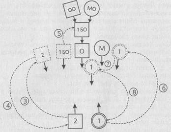 Б. X.: Как вы чувствуете себя на своих местах? Заместительница клиентки: Мне тут не хватает воздуха, так тут тесно с отцом и матерью. Отец: Мне здесь очень хорошо. У меня ощущение, что я стою в центре. Б. X: Сейчас вы видите пример того, как человек делает выводы на основании зрительного образа, а не ощущений на своем месте. Что ты чувствуешь по отношению к дочери? Отец: Я смотрю скорее прямо. По отношению к жене скорее конфронтация. Что-то есть в воздухе между нами. Мать: Я чувствую себя напряженной, у меня такое ощущение, что все против меня. Несмотря на то, что и стою так близко, я чувствую себя одинокой, контакта мало. Дочь — как стержень, за который я держусь. С мужем и сыном контакта нет. Брат: Мне очень хорошо. Они тут играют в свои игры, а я смотрю в другую сторону. Б. X.: Если посмотреть на эту картину, то там, впереди, должен кто-то быть (показывает в направлении разрыва полу- круга). Тут кого-то не хватает. Кто должен тут стоять? Я возьму умершего старшего брата отца. (Ставит его напротив отца, движение 1.) Что изменилось? Брат: Лучше, у меня теперь есть направленность. Заместительница клиентки: Это позволяет мне дышать, раньше я ощущала обоих родителей слишком близко и подавляюще. Теперь родители больше ориентированы в том направле-' нии, и мне стало свободнее. Мать: Когда он появился, у меня было такое чувство, что у меня отбирают власть. С появлением фигуры там, впереди, моя власть исчезает. (Б. X. ставит отца слева от его брата, движение 2.) Брат отца: Теперь мне уже не так одиноко. Отец: Мне здесь лучше, чем там. Заместительница клиентки: Мне стало еще лучше, я чувствую облегчение, у меня больше свободы движений. Б. X.: Моим первым предположением было, что отца тянет к умершему брату. Это то, что вытягивает его из семьи. (Ставит мать слева от мужа.) Мать: Так намного лучше. Здесь я на своем месте. (Б. X. ставит брата слева от сестры.) Заместительница клиентки: Мне теперь тоже хорошо. Когда брат стоял вот тут (показывает на его прежнее место), я думала: «Я же тут сейчас совершенно одна». Было хорошо иметь больше места, но быть настолько одной я тоже не хотела. Брат: Мне здесь не очень хорошо. (Б. X. на пробу ставит брата справа от брата отца, движение 3.) Брат: Так вернее. Б. X.: Это только чтобы проверить, связан ли он как-то с дядей. Что и подтвердилось. Отец: С ним (сыном) мне здесь лучше. Б. X.: Я не совсем ему доверяю, говорит ли он то, что есть... Для терапевта очень важно проверять. Нельзя принимать высказывания участников on face value, нужно внимательно смотреть, погружен он в себя или нет. Делает ли он выводы на основании внешнего и что-то конструирует, или же он непосредственно воспринимает то, что чувствует на данном месте. Это нужно тренировать, и здесь есть хорошая возможность этому поучиться. Итак, я проверил, связан ли сын со своим умершим дядей. Да, связан, но в таком виде это не решение, ему нужно вернуться обратно к сестре. (Ставит его назад к сестре, движение 4, а брата отца ставит за отцом, движение 5.) Что меняется? Переходная и конечная расстановка: