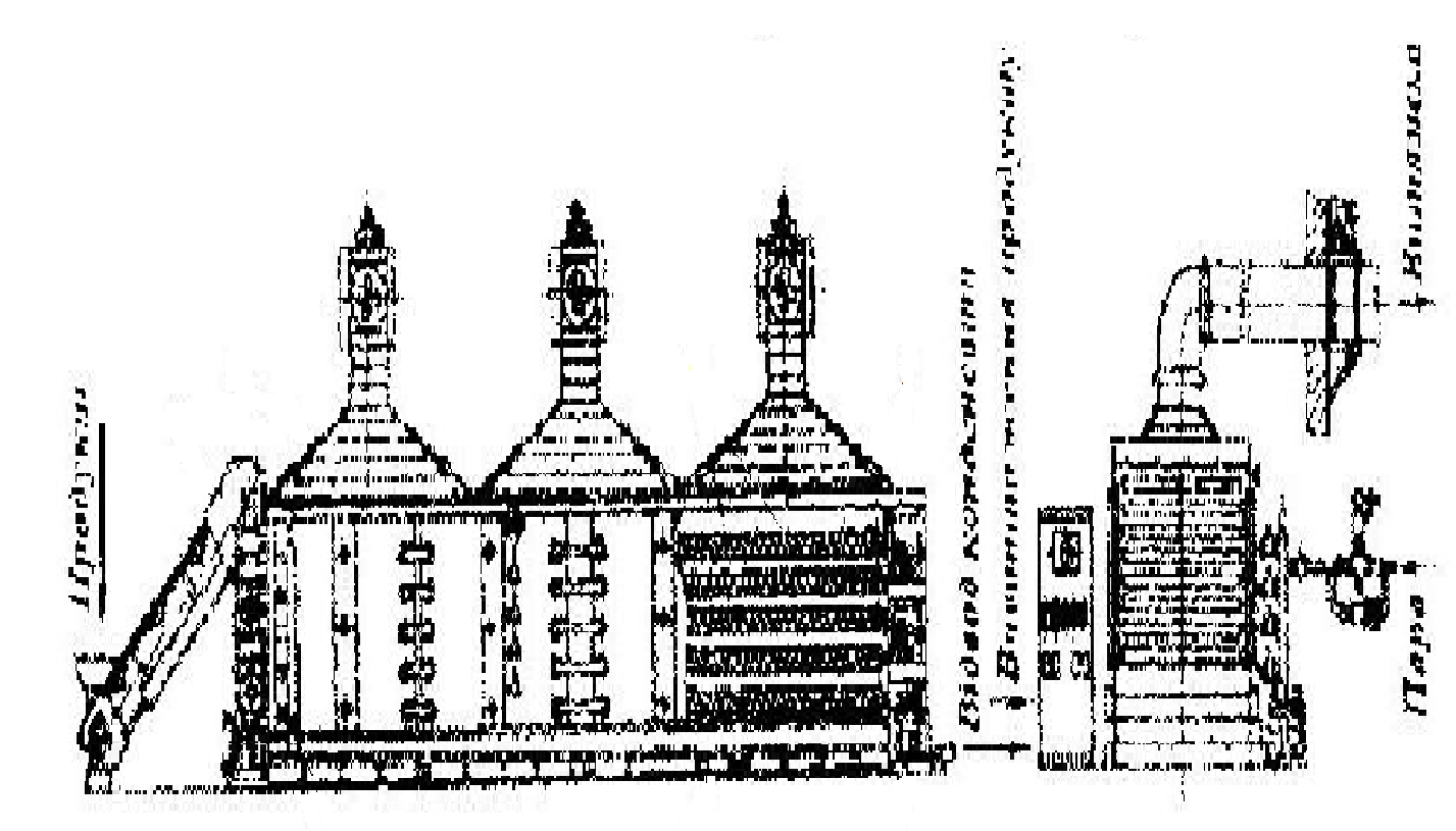 Кількість холодного повітря, яке надходить до парових калориферів, регулюється вручну за допомогою шлюзів, встановлених на всмоктувальних патрубках вентиляторів. Відпрацьоване повітря через трубу відводиться до батареї циклонів для кінцевого очищення. Сушарка змонтована на 12 віброопорах, поглинаючих коливання корпуса. Установка А1-КВР працює наступним чином. Крупа, яка подається із бункера 2 барабанним живильником 4 в короб 11, приводиться за рахунок вібрації решета і подачі повітря під нього у псевдо зріджений стан. Далі потоком гарячого повітря, продукт частково висушуючись, переміщується вздовж решета до поворотного порога 8, що створює підпір і дозволяє збільшувати або зменшувати тривалість перебування крупи в сушильній камері, пересипається крізь поріг і надходить в камеру 10, де процес повторюється. Далі крупа направляється в камеру 9 т.д. Загальне число зон сушіння – три, в 4-й зоні продукт охолоджується. Площа поверхні кожного решета 2 м2. Продуктивність сушарки А1-КВР по сухій гречаній крупі при зниженні вологості з 33 до 9,5% складає 0,117 кг/с. витрати пари становлять 0,478 кг/с. температура повітря в 1,2,3 зонах – 130 °С, в 4-й – 20 °С. Розпилюючі сушарки. В цих сушарках розпилений рідкий продукт висушується в потоці гарячого повітря. основними частинами розпилюючи сушарок є сушильна камер, розпилювач, калорифер, система очищення відпрацьованого повітря, система подачі продукту. Сушильна камера представляє собою теплоізольовану циліндричну башту з листової сталі. Підлога башти – плоска або конічна. В обичайці є двері для входу всередину камери з метою огляду, очищення, ремонту. В нижній частині камери знаходиться скребковий механізм, що має зовнішній привод. Механізм слугує для видалення порошку з днища та стін башти. У верхній частині камери змонтований розпилювач форсункового або дискового типів. У форсунки рідина нагнітається насосом під тиском до 20 МПа, або стисненим повітрям під тиском від 0,15 до 0,5 МПа. В дискових розпилювачах рідина викидається зі спіральних каналів металевого диска, який приводиться в обертання з частотою від 5000 до 2000 об/хв. За допомогою колекторного електродвигуна або парової турбінки. Профільтроване зовнішнє повітря відцентровим вентилятором нагнітається в паровий калорифер. А звідти, нагрівшись до 140-160 °С – в зону розпилення рідини (прямотоком або протитоком). Найдрібніші частки рідини, які омиваються потоками гарячого повітря, швидко висихають й опускаються на дно башти, звідки повільно надходять в шнек. А з нього – у пневмотранспортну лінію з циклоном – розвантажувачем і накопичувальним бункером. Відпрацьоване повітря виводиться із сушильної башти з боку протилежному боку введення, і направляється на очищення від пилеподібних віднесених ним часток порошку в батарею циклонів. В тій же батареї очищується і повітря, використане для переміщення готової продукції від шнеку до бункера-накопичувача. Однією з сучасних вітчизняних розпилюючи установок є А1-ОРЧ (рис. 9.5). Її продуктивність за згущеним цільним молоком (46% сухих речовин) складає 0,267 кг/с при витраті повітря на сушіння 6,11 м3/с. температура повітря на вході в камеру 160 °С. сушарка знижує вологість продукту до 4%. Вона має пульт керування зі світловим табло і звуковою сигналізацією і може працювати у автоматичному та ручному режимах.