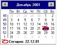 В наших визуальных средах чаще всего используются два объекта, отображающие время или диапазон дат — DTPicker (в VB) или DateTimePicker (в BCB и Delphi) и MonthView (в VB) или MonthCalendar (в BCB и Delphi). В системе Visual Basic вы должны зайти в раздел главного меню Project, выполнить команду Components, нажать кнопку Browse и выбрать файл mscomct2.ocx. В системах BCB и Delphi аналогичные компоненты размещены на закладке Win32. Внешний вид однотипных компонент в разных системах почти одинаков, однако набор свойств, доступных программисту несколько отличается, — в системе Visual Basic их немного больше. В системах BCB и Delphi недостающие свойства компенсируются соответствующими методами. Объект DateTimePicker представляет собой гибрид календаря, отображающего текущую или заданную дату, часов и комбинированного окна ввода. Он имеет два варианта представления, определяемых значением свойства DateMode. По умолчанию DateMode=dmComboBox и во время работы приложения щелчок по кнопке раскрывает календарь, соответствующий установленной или текущей дате. Кнопки со стрелками вправо и влево позволяют перемещаться на соседние месяцы и даже перешагивать через границы года в диапазоне дат, определенном значениями свойств MinDate, MaxDate. Щелчок по дате календаря приводит к ее переносу в окно ввода. Окно ввода устроено довольно нестандартно. Каждая компонента даты может быть выделена отдельно, и тогда ее можно изменить путем набора нужного значения на клавиатуре. Когда используется длинный формат даты (DateFormat=dtLong) и месяц отображается не числом, а словом, то изменение месяца все равно производится набором числа от 1 до 12. Объект DateTimePicker удобен еще и тем, что он автоматически следит за правильностью набора даты. Если установить DateMode=UpDown, то объект лишается выпадающего календаря и обеспечивает только ввод новой даты или отображение значения свойства Date, установленное тем или иным путем. На способ отображения даты влияет строка, содержащая от одного до четырех символов, установленных в свойстве Format. Здесь используются те же сочетания, что и в свойстве FormatString. Для того, чтобы в окне ввода отображалось время достаточно изменить значение свойства Kind=dtkTime. В этом случает содержимое окна ввода и значение свойства Time будут совпадать, но объект будет представлен только в формате UpDown. Свойство CalAlignment позволяет прижать дату или время, отображаемые в окне ввода к левой (по умолчанию CalAlignment=dtaLeft) или к правой (dtaRight) границе. Объект DTPicker в системе Visual Basic имеет практически такой же внешний вид. Выбор варианта использования управляется свойствами UpDown (True или False) и Format (dtpLongDate, dtpShortDate, dtpTime и dtpCustom). Среди его свойств присутствуют такие как Day, DayOfWeek, Month, Week и Year, с помощью которых можно извлечь любую компоненту из значения установленной даты (свойство Value). Свойство CustomFormat используется для формирования пользовательского шаблона отображения дат подобно тому. Объект MonthCalendar (BCB, Delphi) предназначен для отображения календаря на текущий или заданный месяц. По сравнению с календарем в объекте DateTimePicker здесь имеется возможность вывести в левой колонке номера недель (WeekNumbers=True).