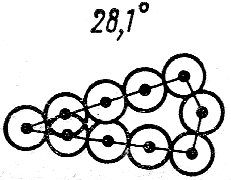 и имеет длину в четыре межатомных расстояния в этой плоскости, а высота - одно межатомное расстояние. Угол наклона θ;/2 плоскости