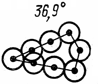 Часто также используют другое понятие - плотность совпадающих узлов, являющееся обратной величиной Σ. Характерным дискретным углам поворота соответствует определенная плотность совпадающих узлов, т. е. их доля по отношению ко всем узлам решетки металла. Например, на рис. 3.9 при угле поворота 36,9° (37°) вокруг оси <001> РСУ образована каждым пятым атомом соседних зерен, т. е. плотность совпадающих узлов равна 1/5.