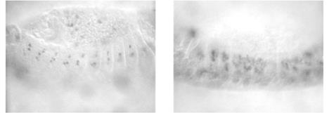 Рис. 2.4. Мутація Notch дрозофіли. В ембріона дикого типу (А) виявляється біля чотирьох клітин попередників нервових клітин на один гемісегмент, а в мутантних (Б) – більше десяти, що є наслідком низької активності гена Notch.
