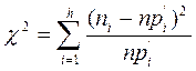 где h - число интервалов; ni – число наблюдений в i -ом интервале; n – общее число наблюдений; - теоретическая (т.е. в соответствии с выбранным теоретическим законом распределения) вероятность попадания в i -ый интервал.