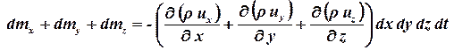 Аналогично можно найти массы, которые останутся внутри объема при движении вдоль осей y и z. Таким образом, общая масса оставшаяся внутри объема равна сумме этих масс
