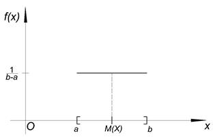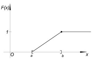Математическое ожидание и дисперсия характеризуют наиболее важные черты распределения случайной величины – его расположение и степень разбросанности. Свойства дисперсии: 1°. 2°. 3°. Если X, Y – независимые случайные величины, то Примеры непрерывных случайных величин. 1. Равномерно распределённая на [ a, b ] случайная величина Х. Опыт: на отрезок [ a, b ] бросается точка
