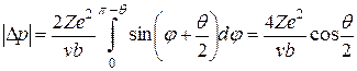 Если считать рассеивающее атомное ядро бесконечно тяжелым, то из закона сохранения энергии следует, что вдали от ядра импульс рассеянной α-частицы р по модулю будет таким же, как и импульс до рассеяния р 0. Следовательно, модуль приращения импульса α-частицы, возникающего в результате рассеяния