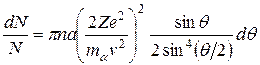 Выражение 2πsin θdθ; есть телесный угол d Ω, в пределах которого заключены направления, соответствующие углам рассеяния от θ; до θ;+ dθ;. Учитывая, что кинетическая энергия α-частицы Tα = mαv 2/2, окончательно получаем