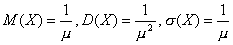 Используя формулы для вычисления математического ожидания, дисперсии и среднего квадратического отклонения нетрудно убедится, что для показательного распределения