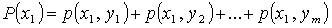 Зная закон распределения двумерной дискретной случайной величины, можно найти законы распределения каждой из составляющих. Действительно, например, события (Х= х1,Y= y1), (Х= х2,Y= y2),…,(Х= хn,Y= ym) несовместны, поэтому вероятностьp(x1)того, что X примет значение x1 такова: