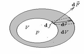 Рис.1.1. Вычисление работы Сила, действующая со стороны термодинамической системы на элементарную площадку оболочки, пропорциональна величине этой площадки: