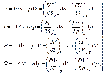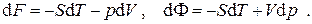 носят названия свободной энергии Гельмгольца (F) и свободной энергии Гиббса (изобарного потенциала) ( Φ ) соответственно. Полные дифференциалы этих функций равны