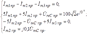 3. Принуждённые составляющие находим из системы уравнений для комплексных амплитуд, описывающей установившийся синусоидальный режим после переходного процесса (рис. 3):