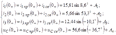 Для определения постоянных А 1, А 2, А 3, А 4 необходимо вычислить начальные значения Решаем систему алгебраических уравнений