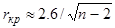 Для удобства вычислений созданы таблицы значений доверительных границ коэффициентов корреляции для различного числа степеней свободы f = n –2 (двусторонний критерий) и различных уровней значимости a = 0,1; 0,05; 0,01 и 0,001. Считается, что корреляция значима, если рассчитанный коэффициент корреляции превосходит значение доверительной границы коэффициента корреляции для заданных f и a. Для больших n и a = 0,01 значение доверительной границы коэффициента корреляции можно вычислить по приближенной формуле