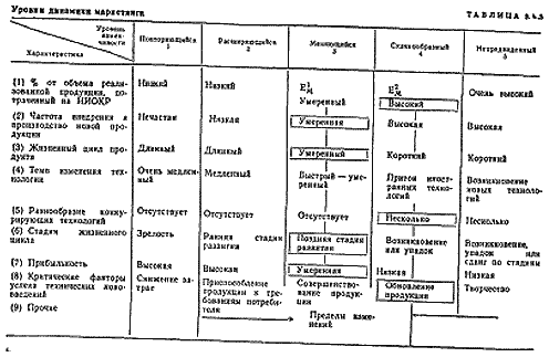 В практических целях необходимо выделить два взаимодополняющих аспекта изменений в СЗХ фирмы: изменчивость маркетинга, измеряемая ожидаемой интенсивностью этой функции, и изменчивость инноваций, измеряемая интенсивностью научно‑технических изменений в продукции и технологии. Причина различия этих двух аспектов заключается в том, что их характеристики не обязательно совпадают. Например, в период с 1930 по 1950 г. в автомобильной промышленности США динамика маркетинга отличалась скачкообразностью и непредвиденностью, а динамика научно‑технического прогресса колебалась между расширением и изменением. В этот же период в некоторых технологически интенсивных СЗХ степень изменчивости инноваций была высокой, а изменчивость маркетинга — низкой. Табл. 3.4.2 и 3.4.3 могут служить для определения этих двух аспектов изменчивости.