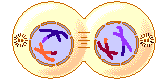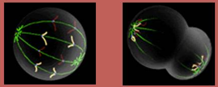 | Веретена деления сокращаются и растаскивают хромосомы к полюсам клетки