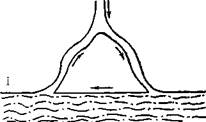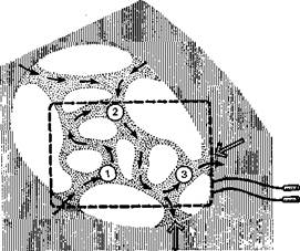 Рис. 13. Оригинальные схемы re-entry, пред- Рис. 14. Схема re-entry вокруг анатомиче- це млекопитающих в очень небольших петлях, т. е. в форме microre-en-try. В экспериментальных работах, выполненных в 70-х годах, эта гипотеза получила подтверждение [Crane-field P., Hoffman В., 1971; Crane-field P. et al., 1971; Wit A. el al., 1972; Sasyniuk В., Mendez С., 1973]. Например, вызванное концентрированным раствором ионов К+ торможение скорости проведения в волокнах Пуркинье собаки до 0,01—0,1 м/с и укорочение в них периода рефрак-терности сопровождаются уменьшением кольцевого пути повторного входа до очень небольших размеров (^1 мм). Длина волны возбуждения, равная произведению из скорости проведения на длительность рефрактерности, соответствует величине такой минимальной петли reentry. Современные представления о reentry усложнились, но они по-прежнему основываются на классических данных. Различают: a) macrore-entry (макрориентри), или упорядоченное (ordered) re-entry; б) microre-entry (микрориентри), или «случайное» (random) re-entry. Разумеется, при таком делении учитывают размеры петли (круга), в которой осуществляется повторный вход. Однако не меньшее значение имеют электрофизиологические особенности каждого из этих двух подвидов re-entry. Мы приводим их описание, основываясь на результатах известных экспериментальных исследований М. Allessie и сотр. (1974—1984). Для формирования macrore-entry с характерными для него свойствами требуются определенные условия: а) наличие устойчивой замкнутой петли, длина которой зависит от периметра анатомического невозбудимого препятствия, вокруг которого движется импульс (рис. 14); б) однонаправленная блокада проведения в одном из сегментов петли re-entry [Quan W., Rudy Y., 1990]; в) длина движущейся волны возбуждения должна быть короче длины петли; благодаря этому перед фронтом («головой») распространяющегося по кругу импульса всегда имеется участок ткани, вышедший из состояния рефрактерности и восстановивший свою возбудимость; этот сегмент, или «окно возбудимости», имеет протяженность до 20% длины всей петли. Именно в этот «зазор» стараются попасть, нанося экстрастимулы, чтобы прервать круговое движение импульса при реципрокных тахикардиях. Укорочение рефракторного периода клеток, образующих петлю, способствует расширению «окна возбудимости», но оно не оказывает влияния на скорость распространения импульса и частоту ритма. Умеренное удлинение периода рефрактерности суживает «окно возбудимости» тоже без воздействия на скорость движения импульса по петле и на частоту ритма. При значительном удлинении рефрактерности «окно возбудимости» может закрыться, циркулирующая волна наталкивается на участок, находящийся в состоянии функциональной рефрактерности; движение импульса резко замедляется либо прекращается [Feld G. et al., 1986]. Описанный механизм mucrore-entry лежит, как полагают, в основе трепетания предсердий, а также некоторых форм реци-прокной тахикардии [Медвинский А. Б., Перцов А. М., 1989]. При другой разновидности повторного входа — microre-entry — движение импульса происходит по малому замкнутому кольцу, не связанному с каким-либо анатомическим препятствием. Теоретическое обоснование этому процессу было дано еще Th. Lewis (1925). М. Allessie и соавт. производили картографирование левого предсердия кролика в тот момент, когда с помощью электрического экстрастимула была вызвана пред-сердная тахикардия с частотой от 400 до 800 в 1 мин. Регистр