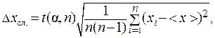 Здесь xi - результат i -го измерения, n - число измерений. В случае малого n правильная оценка погрешности основана на использовании распределения Стьюдента (t – распределения). Случайная ошибка измерения может быть оценена величиной случайной абсолютной погрешности D x сл., которую вычисляют по формуле