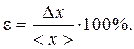 Если измерения той же величины повторить теми же приборами в тех же условиях, то истинное значение измеряемой величины x ист. попадет в этот же доверительный интервал, но попадание будет не достоверным, а с вероятностью a. Вычислив величину абсолютной погрешности D x по формуле (1), истинное значение x измеряемой физической величины можно записать в виде x = <x> ± D x. Величина абсолютной погрешности Δ x результата измерений еще не определяет точности измерений. Для оценки точности измерения физической величины подсчитывают относительную погрешность, которую обычно выражают в процентах: