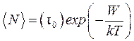 Механизм внутреннего трения в жидкостях и газах неодинаков, так как в них различен характер теплового движения молекул. Вязкость жидкости обусловлена молекулярным взаимодействием, ограничивающим движение молекул. Каждая молекула жидкости находится в потенциальной ямы, создаваемой соседними молекулами. Поэтому молекулы жидкости совершают колебательное движения около положения равновесия, то есть внутри потенциальной ямы. Глубина потенциальной ямы незначительно превышает среднюю кинетическую энергию, поэтому, получив дополнительную энергию при столкновении с другими молекулами, она может перескочить в новое положение равновесия. Энергия, которую должна получить молекула, чтобы из одного положения перейти в другой называется энергия активации W, а время нахождения молекулы в положении равновесия – временем “оседлой жизни” t. Перескок молекул между соседними положениями равновесия является случайным процессом. Вероятность того, что такой перескок произойдет за время одного периода t0, в соответствии с законом Больцмана, составляет: