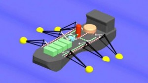 установка будет состоять из плавающих буев, которые прикрепляются на шарнирных механизмах к бортам 50-метрового корабля. При каждом «подпрыгивании» буя на волнах стержень механизма движется вверх-вниз, при этом механическая энергия преобразуется в электрическую, которая аккумулируется в бортовых системах хранения, каждая емкостью 20 МВт-ч. При необходимости корабль причаливает к берегу и энергия из аккумуляторов перекачивается в муниципальную электросеть для использования в часы пиковой нагрузки.