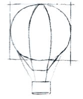 Общий принцип: нужно начинать с простых форм и затем добавлять детали. Чтобы изобразить воздушный шар с корзиной, нарисуй сначала круг и прямоугольник, а потом прорисуй детали