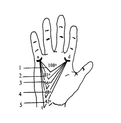 Завдання 4. Кут atd в нормі та при хромосомних аномаліях (за А.А. Слюсаревим, С.В. Жуковою, 1987). 1. Синдром Патау. 2. Синдром Дауна. 3. Синдром Шерешевського-Тернера. 4. Норма. 5. Синдром Клайнфельтера.