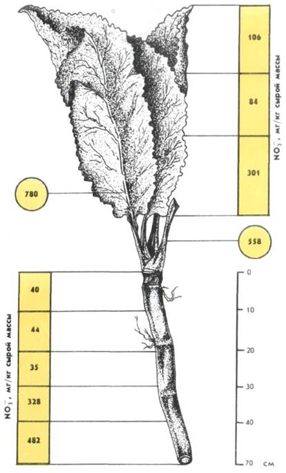 Содержание нитратов в корнеплодах сельдерея возрастает от верхушки к основанию. В черешке листа их количество растет от основания к верхушке более чем в 3 раза. Листовые пластинки содержат меньшее количество нитратов.