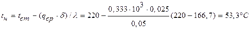 Теперь можем определить температуру наружной поверхности изоляции двумя способами: а) используя формулу плоской стенки