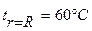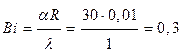 Методические указания. Наиболее удобный путь решения задачи состоит использовании известной теоретической зависимости между относительной безразмерной температурой и критериями Био и Фурье: (t*—tж)/(t0—tж)=f(Fo, Bi). Эта зависимость представлена графиками на рис. 3—4, 3—5 [1] для двух случаев: когда t* есть температура центра (среднего сечения) пластины и когда t* есть температура поверхности пластины. По графикам определяют безразмерную температуру, вычислив сначала значения безразмерных чисел: Fo = Коэффициент температуропроводности а вычисляют по известным значениям плотности, теплоемкости и коэффициента теплопроводности пластины. При вычислении критериев следует помнить, что они безразмерны и что Найдя по графику или.таблице безразмерную относительную температуру, например, для центра пластины, затем, находят по ней и температуру центра пластины, поскольку значения температуры среды tж и начальной температура пластины t0 известны. В случае затруднений с решением задачи 4 рекомендуется проанализировать предлагаемые решения аналогичной задачи, но с нагреванием круглого стержня, бесконечной длины. Круглый стержень диаметром 0,02 м имеет длину во много раз больше диаметра (цилиндр бесконечной длины). Стержень выполнен из пластика с коэффициентом теплопроводности 1 Дано: R= D/2=0,01 м; Определить: Решение: Искомые температуры находятся из соответствующих безразмерных температур, определяемых, в свою очередь, по формулам или графикам через критерии Фурье Fо и Био Bi Вычислим эти критерии для цилиндрического тела: Fo