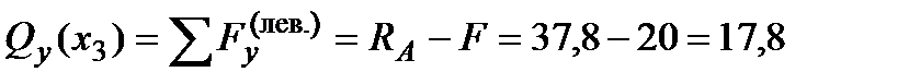 эпюра поперечных сил будет линией нулевого порядка с ординатой 17,8 кН. В точке приложения силы