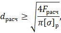 Итак, расчет болта на совместное действие растяжения и кручения можно заменить расчетом на растяжение, т. е. Fрасч = 1,3 F 0. Расчетный диаметр болта: