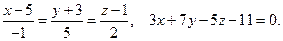 Завдання 3. Пряма задана як перетин двох площин. Написати канонічне рівняння цієї прямої.