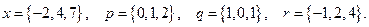 А(0, 7, -9), В(-1, 8, -11), С(-4, 3, -12).