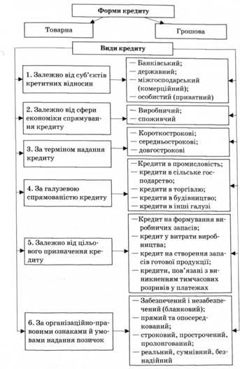 За інституціональною ознакою та організацією торгівлі фінансовими ресурсами фінансовий ринок поділяється на кредитний і ринок цінних паперів. Кредитний ринок охоплює ту частину фінансового ринку, яка функціонує на основі укладення кредитних угод; він має договірний характер. Такий ринок є основною складовою фінансового ринку. По-перше, він забезпечує найшвидший доступ до фінансових ресурсів. По-друге, переваги кредитного ринку випливають із функціонального потенціалу основних суб'єктів цього ринку — комерційних банків, що не тільки опосередковують рух фінансових ресурсів, а й певною мірою продукують їх. Кредитний ринок дає змогу здійснити нагромадження, розподіл, перерозподіл та рух позикового капіталу між сферами економіки, суб'єктами фінансового ринку. Позиковий капітал — це кошти, віддані в позику за визначений відсоток на засадах зворотності, строковості, забезпеченості, платності та добровільності. Формою руху позикового капіталу є кредит. Кредит — суспільні економічні відносини, що виникають між економічними суб'єктами у зв'язку з передачею один одному в тимчасове користування вільних коштів (вартості) на засадах зворотності, платності та добровільності. Об'єктом кредиту є та вартість, яка передається в позику одним суб'єктом іншому. Позичена вартість може бути в грошовій формі, у формі товарів, виконаних робіт, наданих послуг. Форми та види кредиту класифікуються за різними критеріями (рис. 14.6). Рис. 14.6. Класифікація форм і видів кредиту Ринок цінних паперів — особлива форма торгівлі фінансовими ресурсами, що опосередковується випуском та обігом цінних паперів. Він є найактивнішою частиною сучасного фінансового ринку і дає змогу реалізовувати різноманітні інтереси емітентів, інвесторів та посередників. До основних функцій ринку цінних паперів належать: облікова, функція контролю, збалансування попиту і пропозиції, стимулювальна, перероз-подільна, регулювальна. Механізм функціонування ринку цінних паперів залежить від складових цього ринку, тобто його структури (рис. 14.7). Первинний ринок — ринок перших і повторних випусків (емісій) цінних паперів, на якому відбувається їх первинне розміщення (андерайтинг). Первинне розміщення здійснюється шляхом безпосереднього звернення емітента до покупця, або передачі всієї емісії чи її частки посередникові (інституційному інвестору), який бере на себе функції поширення цінних паперів. На вторинному ринку відбувається обіг раніше емітованих на первинному ринку цінних паперів, тобто їх перерозподіл. Цей ринок характеризується операціями перепродажу раніше випущених цінних паперів. Рис. 14.7. Структура ринку цінних паперів за основними ознаками Без розвиненого вторинного фондового ринку, який забезпечує постійну ліквідність і розподіл фінансових ризиків, не може ефективно існувати первинний ринок цінних паперів. Однією з основних функцій вторинного ринку є встановлення реальної ринкової ціни або курсу окремих цінних паперів, що відображає всю інформацію про фінансовий стан їх емітентів та умови емісії. З погляду організації або місця торгівлі цінними паперами він поділяється на біржовий і позабіржовий. Біржовий ринок цінних паперів пов'язують із поняттям фондової біржі як особливо організованого вторинного ринку, що сприяє підвищенню мобільності капіта