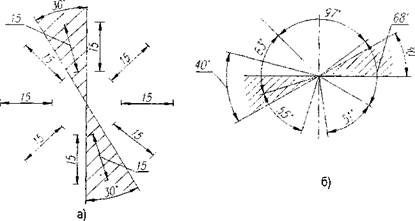Размерные числа линейных размеров при различных наклонах размерных линий располагают, как показано на рис. 3.20, а, а для угловых размеров-на рис. 3.20, б. Для размеров, попавших в заштрихованные зоны, размерные числа наносят на горизонтальных полках линий-выносок.