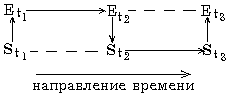Ïîñêîëüêó ìû ôèêñèðóåì òåì èëè èíûì ñïîñîáîì èçìåíåíèÿ â ñðåäå è â ñèñòåìå, ïåðåõîä ñèñòåìû îò ñîñòîÿíèÿ â ìîìåíò t1 ê ñîñòîÿíèþ â ìîìåíò t3, à ñðåäû îò ñîñòîÿíèÿ t1 ê ñîñòîÿíèþ t2 ïðîèñõîäèò èç-çà âîçäåéñòâèÿ ñèñòåìû íà ñðåäó èëè ñðåäû íà ñèñòåìó, à íå ïî êàêîé-ëèáî òðåòüåé ïðè÷èíå. Åñëè ýòà òðåòüÿ ïðè÷èíà ñóùåòâóåò, òî ìû äîëæíû âêëþ÷èòü åå èñòî÷íèê èëè â ñèñòåìó, èëè â ñðåäó. Íàïðèìåð, çàôèêñèðîâàâ èçìåíåíèå ýìîöèîíàëüíîãî ñîñòîÿíèÿ ÷åëîâåêà, ìû ìîãëè îøèáî÷íî ïðèïèñàòü åãî âëèÿíèþ âûïîëíÿåìîãî çàäàíèÿ. Ìåæäó òåì ïðè÷èíîé èçìåíåíèÿ ñîñòîÿíèÿ ìîãëî áûòü íåãàòèâíîå îòíîøåíèå ê ýêñïåðèìåíòàòîðó. È, ñëåäîâàòåëüíî, ýêñïåðèìåíòàòîð äîëæåí áûòü âêëþ÷åí â êà÷åñòâå ñîñòàâíîãî ýëåìåíòà â îïèñàíèå ýêñïåðèìåíòàëüíîé ñðåäû. Ïåðåõîä ñèñòåìû èç ñîñòîÿíèÿ St1 â ñîñòîÿíèå St2 - òàê æå êàê è ïåðåõîä Åt1 - - - Åt2 - îïðåäåëÿåòñÿ âíóòðåííèì ñàìîäâèæåíèåì ñèñòåìû è ñðåäû. Íåòðóäíî çàìåòèòü, ÷òî ðàññìàòðèâàòü ïðîöåññ âçàèìîäåéñòâèÿ ìîæíî è èíà÷å, à èìåííî, âçÿâ çà îòïðàâíóþ òî÷êó ñîñòîÿíèå ñèñòåìû. Òîãäà ãðàô áóäåò âûãëÿäåòü ñëåäóþùèì îáðàçîì (Ðèñ. 2):