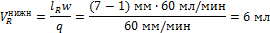 Задача 2. Удерживаемый объём несорбирующегося компонента составляет 5 мл. На данной колонке расстояние удерживания (lR) пропана при различных скоростях диаграммной ленты (q) составляет:
