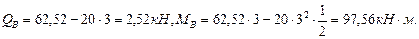 Определим величину изгибающих моментов в точках K и M (в данных точках эпюра поперечных сил меняет знак, рис.4.5):